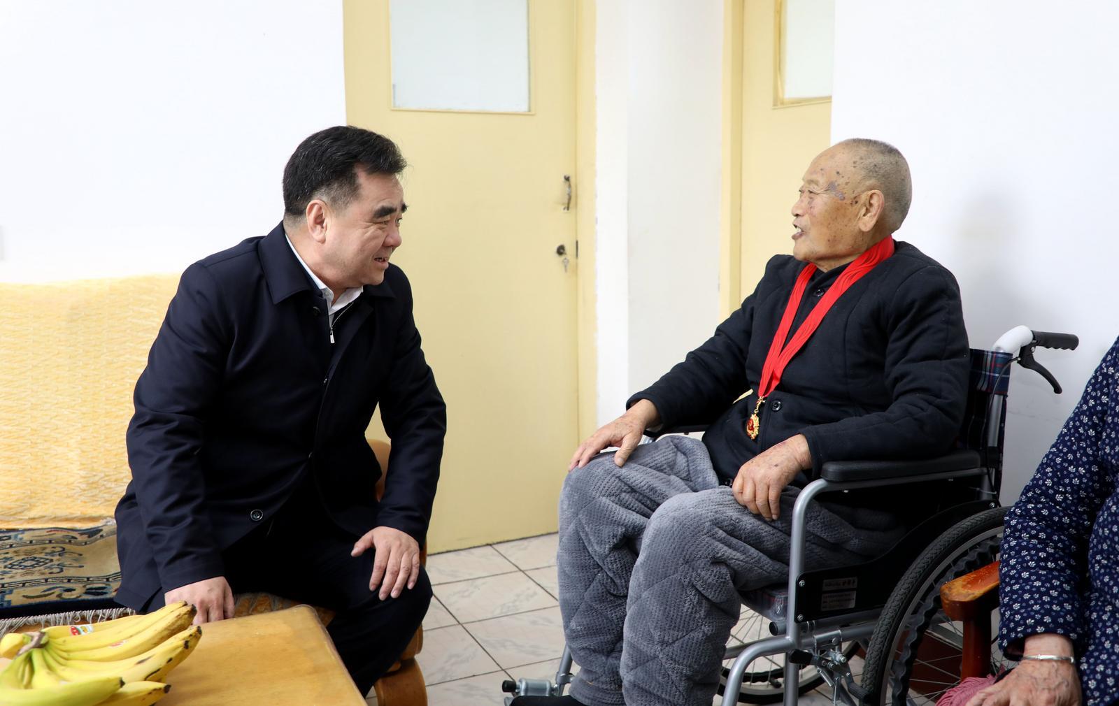 張學(xué)儒是原慶陽地區(qū)公安處偵察員,1961年3月加入中國共產(chǎn)黨,夫妻二人均年事已高,因病生活困難。黃澤元與老人促膝交流,詢問身體健康、生活起居等情況,詳細了解生活中的困難和問題,囑咐老人要保重身體、頤養(yǎng)天年,要求相關(guān)部門要多關(guān)心老人生活,及時幫助解決困難,讓老人安度晚年。