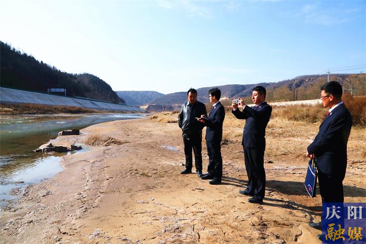 ▲慶陽(yáng)市人民檢察院工作人員調(diào)查西峰區(qū)武家川河流污染情況。