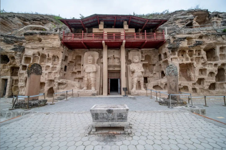 從塬上一直向西,來(lái)到覆鐘山下,一座始建于北魏永平二年的石窟寺會(huì)呈現(xiàn)在您的面前。歷經(jīng)七個(gè)朝代、1500多年歷史石窟佛光,輝映著絲綢之路東西南北民族融合、文明互鑒的盛世輝煌,在茹河和蒲河的交匯處感受滴水藏海的深沉力量。
