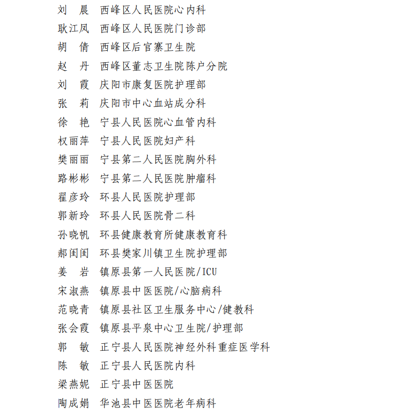 優(yōu)秀護(hù)理團(tuán)隊(duì)名單