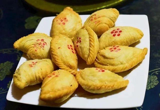做皮、包餡、捏邊、點(diǎn)花、油炸,千層薄皮、酥脆香甜,油潤(rùn)適口、滋味豐富,沒(méi)有人能夠抵擋糖酥角的香甜誘惑。