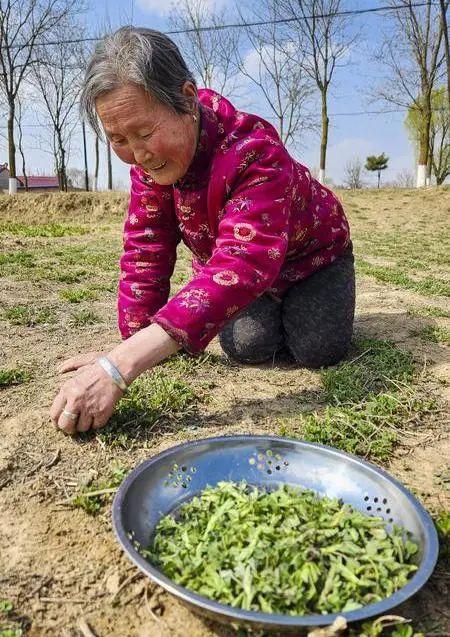 同時裝扮這個春天的還有各種各樣的野菜和穿紅著綠的挖野菜的女人。