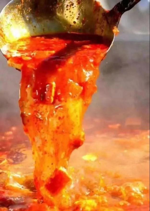 出鍋前,如果嫌湯不紅,可將用油潑制好的“辣椒油”加些入湯。將雞蛋打制好,在開水里澆制成“蛋塊”,然后撈到做好的湯里。這樣又紅又香的一鍋“饸饹湯”就調(diào)制好了。