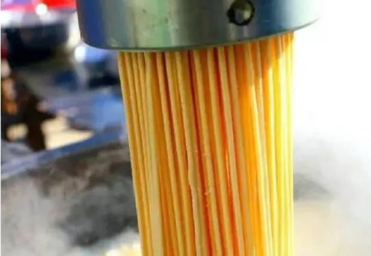 蕎面太多,面容易下成節(jié)狀。制作饸饹面時,先將蕎面用開水燙成碎面團(tuán),再加入白面,用加了堿或鹽的涼水摻和,和均揉成面團(tuán),餳好,揉成軟硬適中的面棒,待水開時,將面棒放進(jìn)床子里,一口氣壓下,中途不能有間隔,否則面條會打皴,中斷。