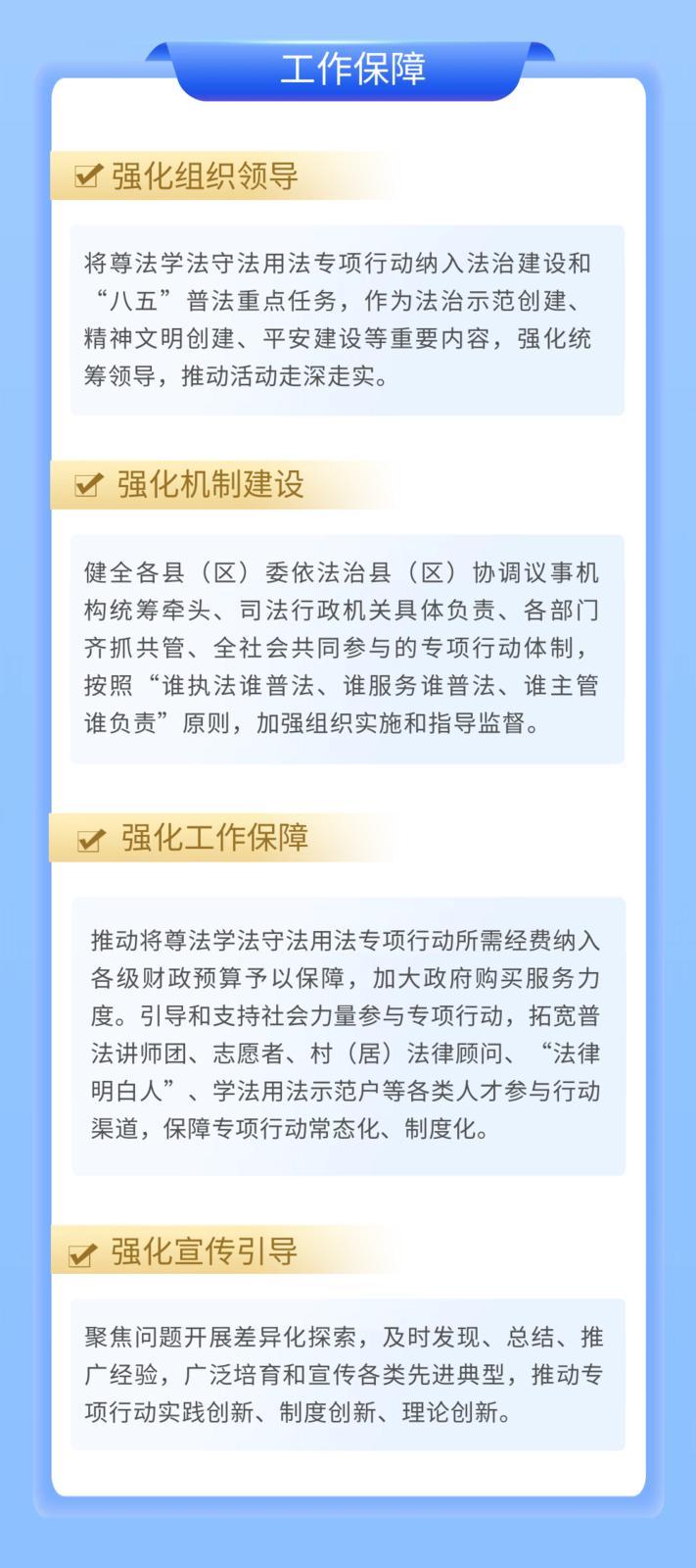 近日,中共慶陽(yáng)市委宣傳部、市委依法治市辦、市司法局聯(lián)合印發(fā)《慶陽(yáng)市全民尊法學(xué)法守法用法專項(xiàng)行動(dòng)工作方案》,通過(guò)專項(xiàng)活動(dòng)全面培育公民法治素養(yǎng),增強(qiáng)公民法治意識(shí),加快法治慶陽(yáng)建設(shè)。