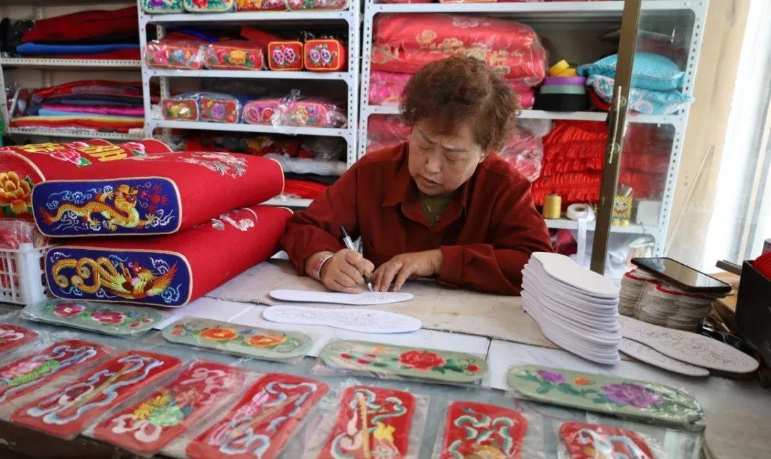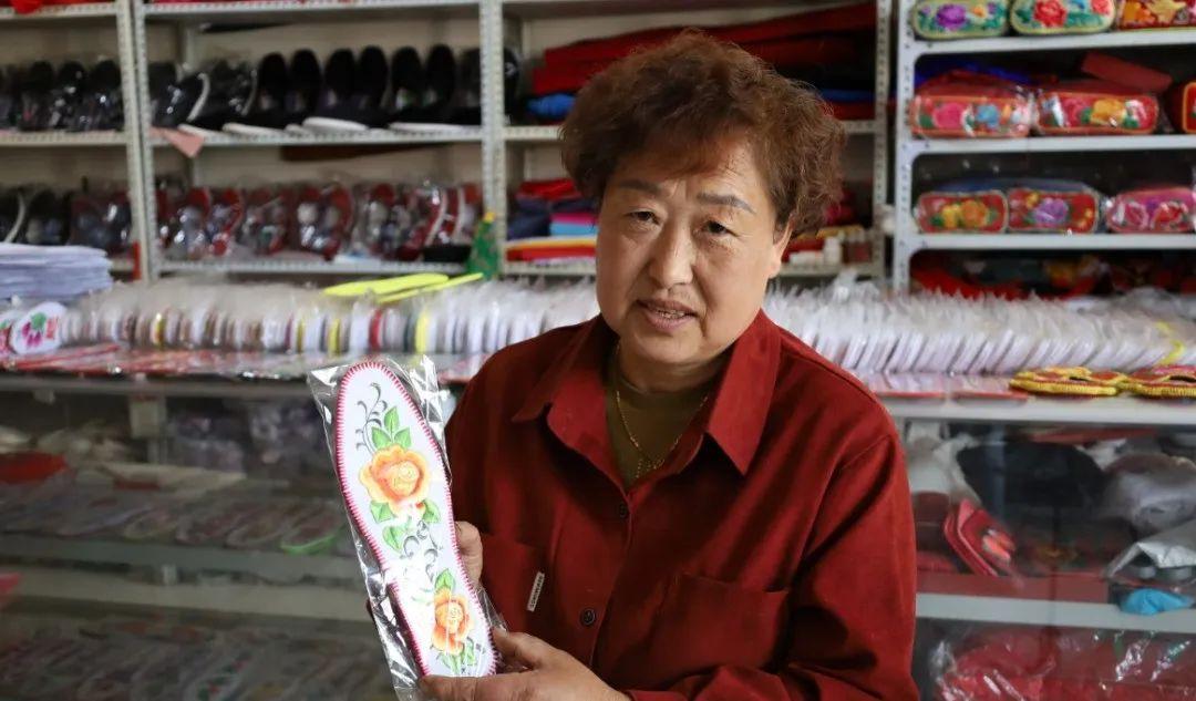 “咱們這邊做飯、看孩子上學(xué)的婦女,只要是來的人,我都給教呢,不論是誰,我是個(gè)沒脾氣的人,他們隨到隨教,只要他們來問,我都給說、給教?!杯h(huán)縣刺繡達(dá)人邊巧琴笑著說。