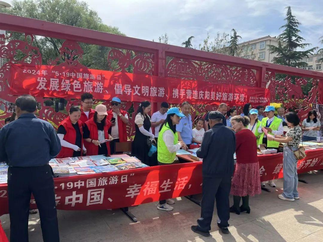 為進(jìn)一步展現(xiàn)慶陽豐富的旅游資源,倡導(dǎo)文明安全綠色旅游新風(fēng)尚,努力在全社會(huì)營(yíng)造關(guān)注旅游、參與旅游、支持旅游的良好氛圍。5月19日,市區(qū)兩級(jí)文旅部門在西峰區(qū)東湖公園西門廣場(chǎng)聯(lián)合開展了“發(fā)展綠色旅游 倡導(dǎo)文明旅游 攜手營(yíng)造慶陽美好旅游環(huán)境”主題宣傳活動(dòng)。市區(qū)兩級(jí)文旅部門分管領(lǐng)導(dǎo)、相關(guān)科(股)室工作人員、西峰轄區(qū)A級(jí)旅游景區(qū)、旅行社共計(jì)50余人參加了活動(dòng)。