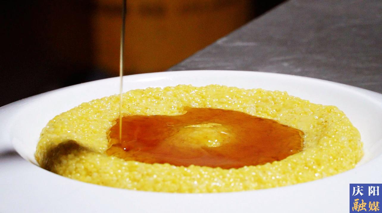 慶陽的端午傳統(tǒng)美食——黏米飯,跟粽子有異曲同工之妙,又彌補了粽子不易消化的不足,對脾胃更加友好。黏米飯選用北方特有的大黃米,也叫“糜子”。糜子比小米顆粒大,黏糯程度比糯米有過之而無不及,做成黏米飯,金黃的顏色特別誘人。蒸好的黏米飯口感軟糯,容易消化,再淋上麥芽糖稀,畫龍點睛,口感更佳。