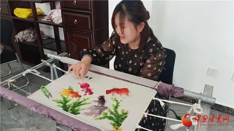 “這幅《洛神賦》長(zhǎng)卷已經(jīng)被杭州的客商6萬(wàn)元訂購(gòu)了,這幅作品,我們的繡娘用隴繡技藝一針一線慢慢繡,全部繡完要8個(gè)月。”左煥茸老師說(shuō),傳統(tǒng)的刺繡需要時(shí)間打磨,通過(guò)傳習(xí)室,她把村莊周邊的婦女請(qǐng)來(lái)統(tǒng)一培訓(xùn),愿意上班的都留下來(lái)每天在這里搞刺繡。這些繡娘有老人、還有殘疾人,大家在這里擁有了一份工作,生活也變得更好。