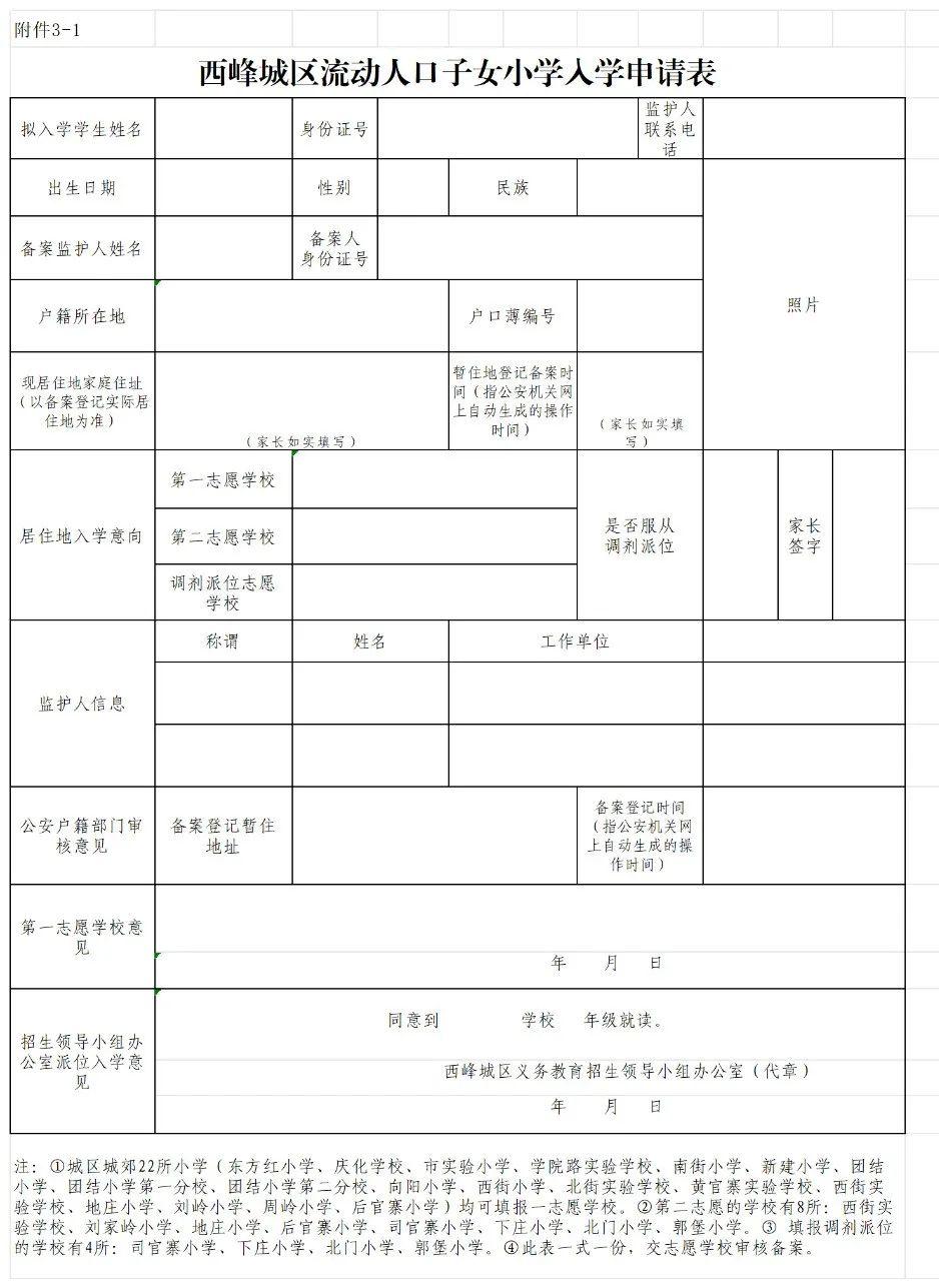 (二)非西峰戶籍流動(dòng)人口子女與西峰非城區(qū)戶籍流動(dòng)人口子女,提供監(jiān)護(hù)人及本人原籍戶口本、《西峰城區(qū)流動(dòng)人口子女小學(xué)入學(xué)申請(qǐng)表》。
