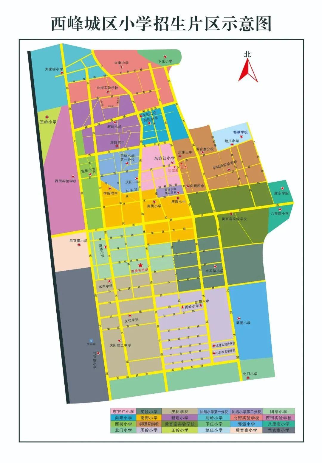 南街小學(xué):長(zhǎng)慶大道以東,老西環(huán)路、永平路、國(guó)稅局巷西延伸段以南,董志塬大道以西,蘭州路以北;董志塬大道以東,育才東路以南,九龍路以西,蘭州路以北;岐黃大道以東,蘭州路以南,隴東大道以西,順化路以北。