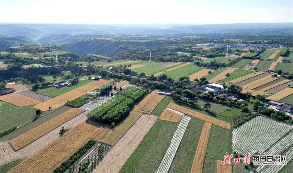 盛夏時(shí)節(jié)的慶陽(yáng)市西峰區(qū)后官寨鎮(zhèn)顯勝鄉(xiāng),金色的麥田與綠樹、村莊互相映襯,構(gòu)成一幅美麗的鄉(xiāng)村田園畫卷。