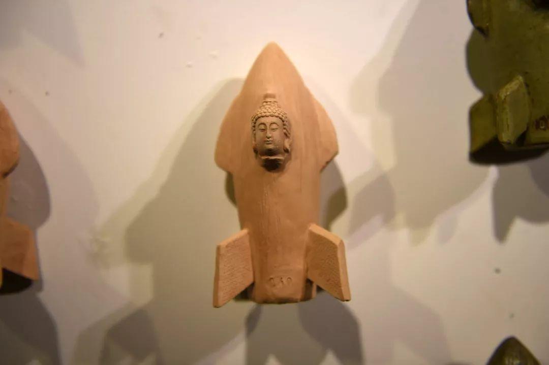 ▲別現(xiàn)代《勸善----十字佛.導(dǎo)彈佛》陶藝裝置