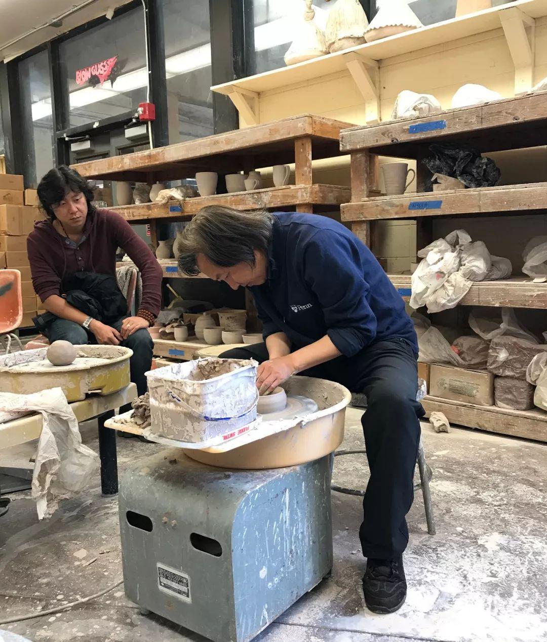 ▲左義林在工作室進(jìn)行陶瓷和油畫創(chuàng)作
