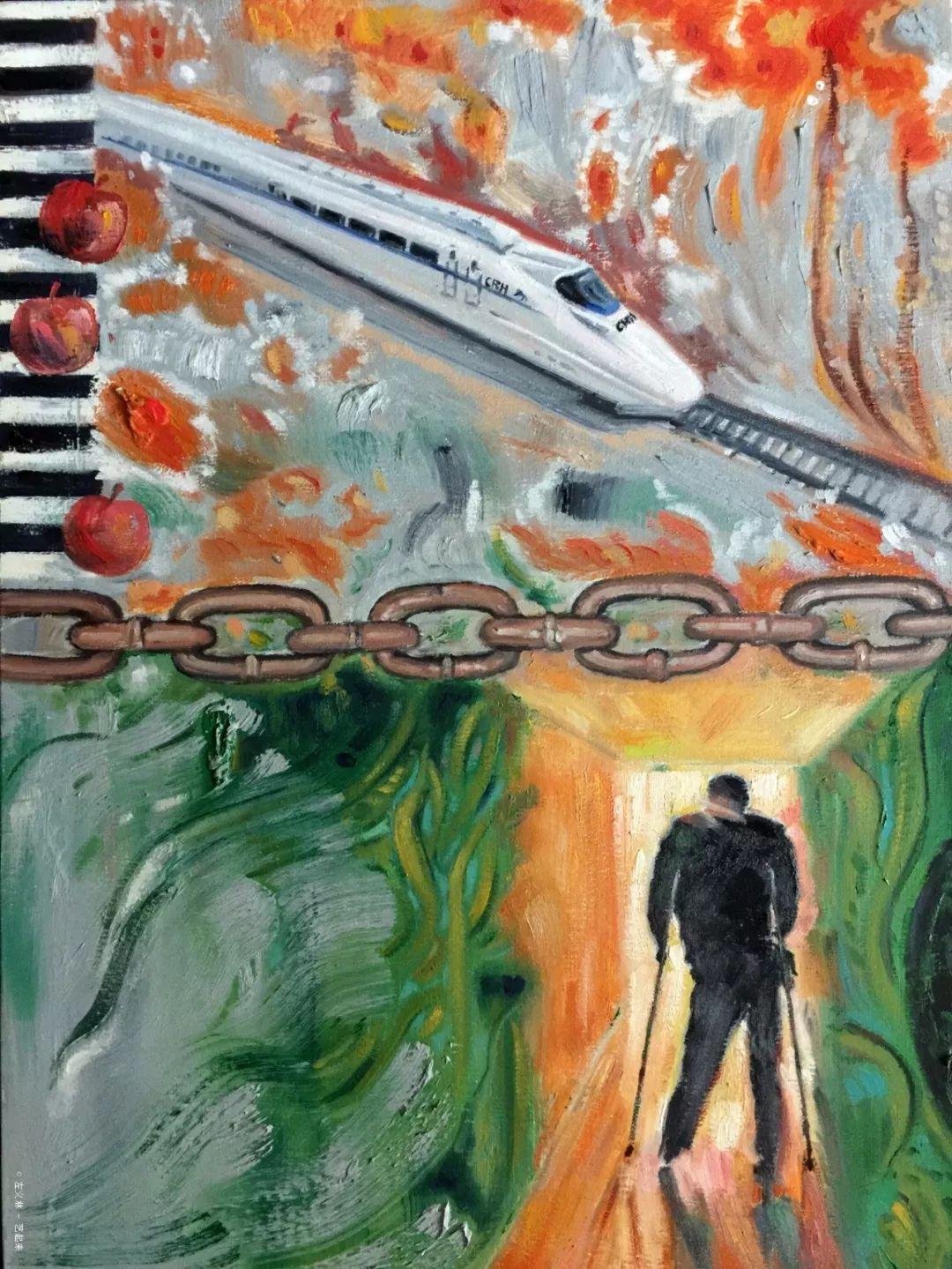 2017年10月陶藝裝置作品“薩德導(dǎo)彈”和油畫作品“父親寫下的散文詩”在美國“別現(xiàn)代藝術(shù)展”展出。