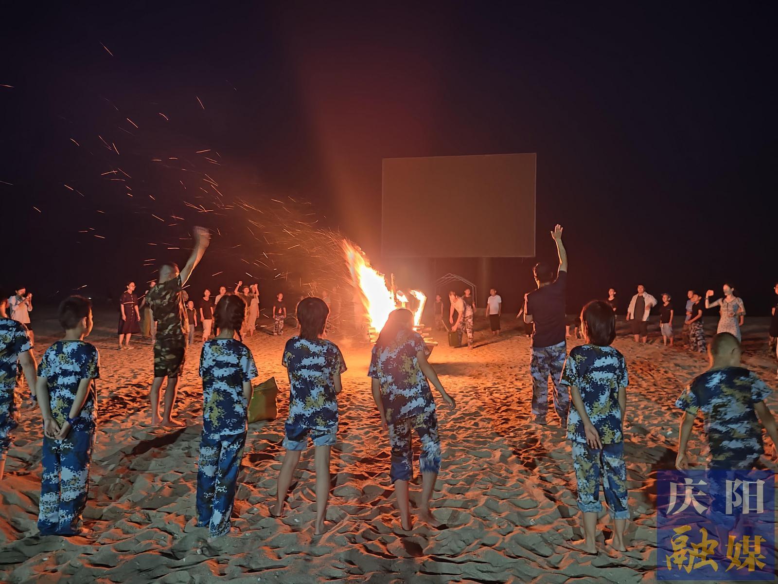 落日時分,太陽變得火紅,發(fā)出刺眼的光芒,將海面染成金色,緩緩落下后,迎來了黑夜的篝火晚會。我們踩在沙灘上,手拉手,圍繞在篝火旁,載歌載舞,自由歡唱,當燦爛的煙花在天空綻放時,美好的一天落下了帷幕。