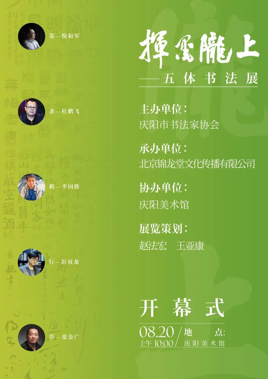 為了穩(wěn)步推進(jìn)慶陽(yáng)文藝事業(yè)高質(zhì)量發(fā)展,進(jìn)一步開闊書法人創(chuàng)作視野,提升創(chuàng)作水平,促進(jìn)學(xué)習(xí)交流。慶陽(yáng)市書法家協(xié)會(huì)聯(lián)合北京錦龍?zhí)梦幕瘋鞑ビ邢薰咎匮珖?guó)中青年書法家倪和軍、杜鵬飛、李國(guó)勝、彭雙龍、欒金廣前來慶陽(yáng)舉辦書法五體展 , 他們都是活躍在當(dāng)下書壇的實(shí)力派書法家,具有高水平的創(chuàng)作實(shí)踐和前瞻的創(chuàng)作理念,展出的100件作品根植傳統(tǒng)、守正創(chuàng)新,風(fēng)格多樣、異彩紛呈,從各自不同的藝術(shù)角度,用豐富的書法語(yǔ)言,詮釋著中華優(yōu)秀傳統(tǒng)文化的博大精深和無窮魅力。他們聯(lián)袂呈現(xiàn)的書法盛宴,為慶陽(yáng)本地書法家、書法愛好者學(xué)習(xí)、互鑒、交流搭建了有益平臺(tái),必將為慶陽(yáng)書法事業(yè)和人才建設(shè)起到積極的推動(dòng)作用。