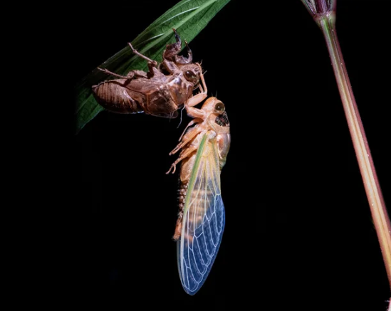 蟬衣掛在草尖還沒來得及風(fēng)干,敵人就來了。這個林子里究竟隱藏著多少只窺視的眼睛和多少惡爪,它來不及細想。蟬想起了前夜,涅槃之路何其漫長啊,漫長到無法呼吸,從地下到地上一拱的路程似乎需要一光年,一路小心翼翼;化蛹成蟬是經(jīng)歷了千年選擇的一條路,如鈍刀,在黑暗中雕琢取舍了千萬遍,即便如此,蟬仍不敢有丁點大意。蟬完全不像林子里追逐嬉鬧的孩子們,他們有界限分明的歡樂時光,有肆無忌憚的穿林腳步,不會擔(dān)心跌跤會摔疼,不用考慮腦智會蒼白。