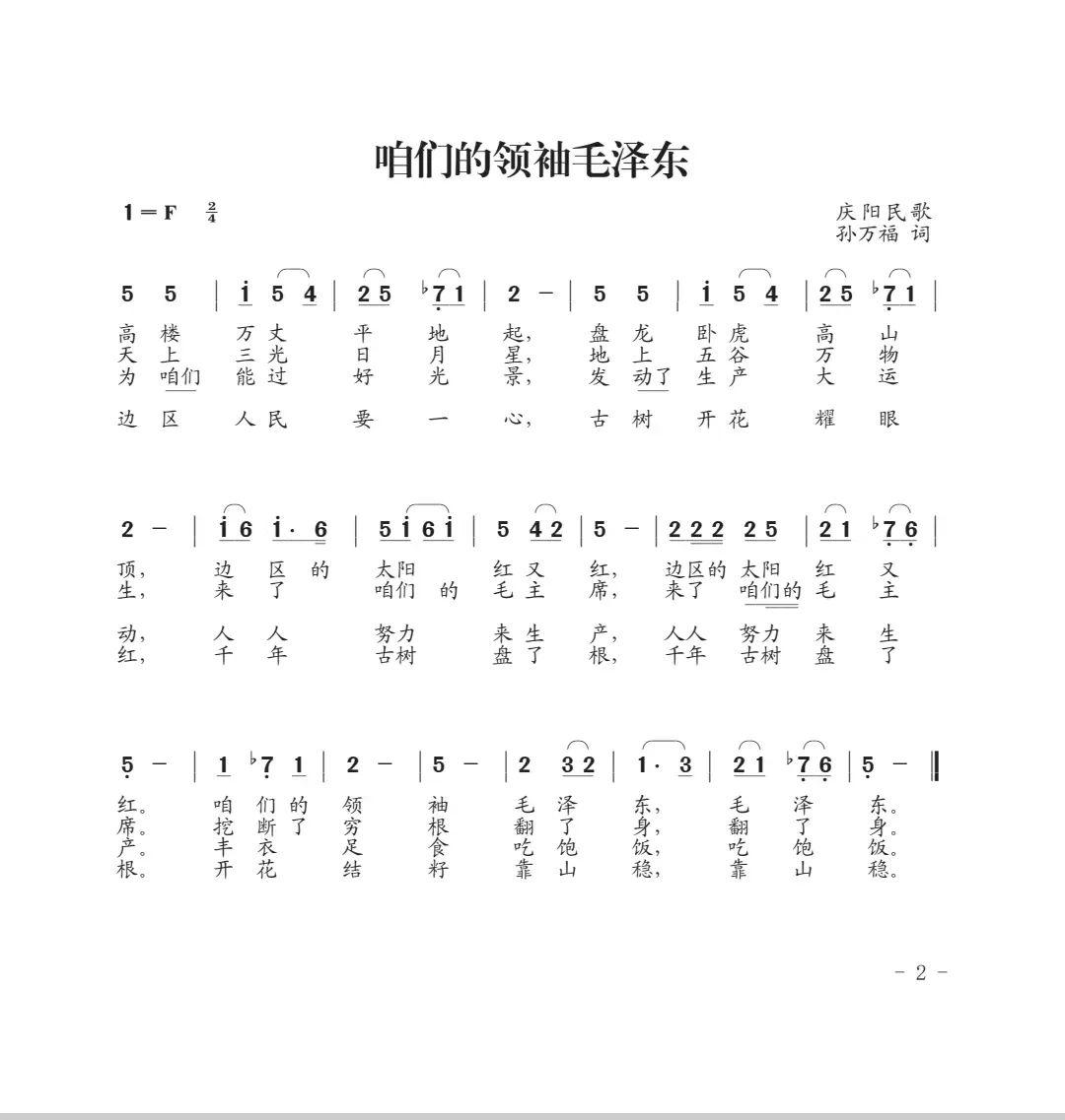 隴東民歌《咱們的領(lǐng)袖毛澤東》曲譜
