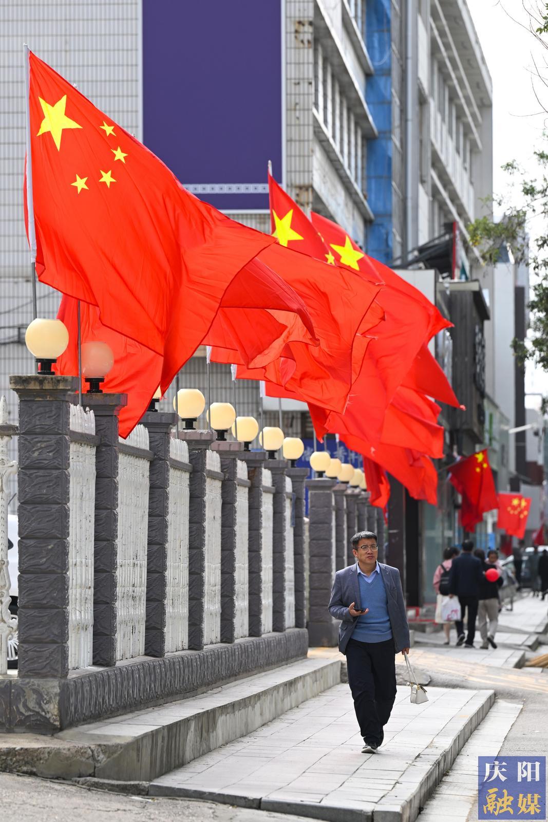 西峰區(qū)馬蓮河大道五星紅旗招展。