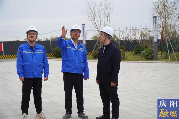 慶陽市住建局工作人員(右一)與中國(guó)能建施工方討論項(xiàng)目進(jìn)展。