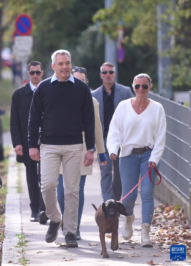 這是9月29日,奧地利總理、人民黨黨首內(nèi)哈默(前左)前往維也納的一處投票站參加奧地利國民議會(huì)選舉投票。新華社記者 賀燦鈴 攝