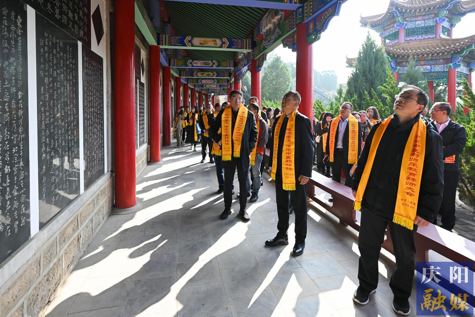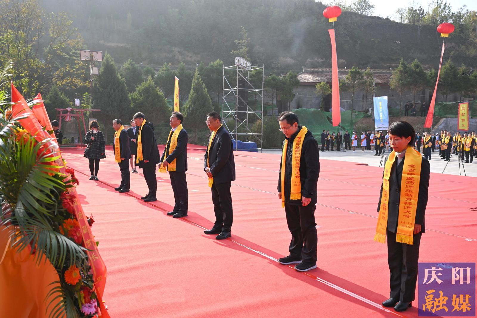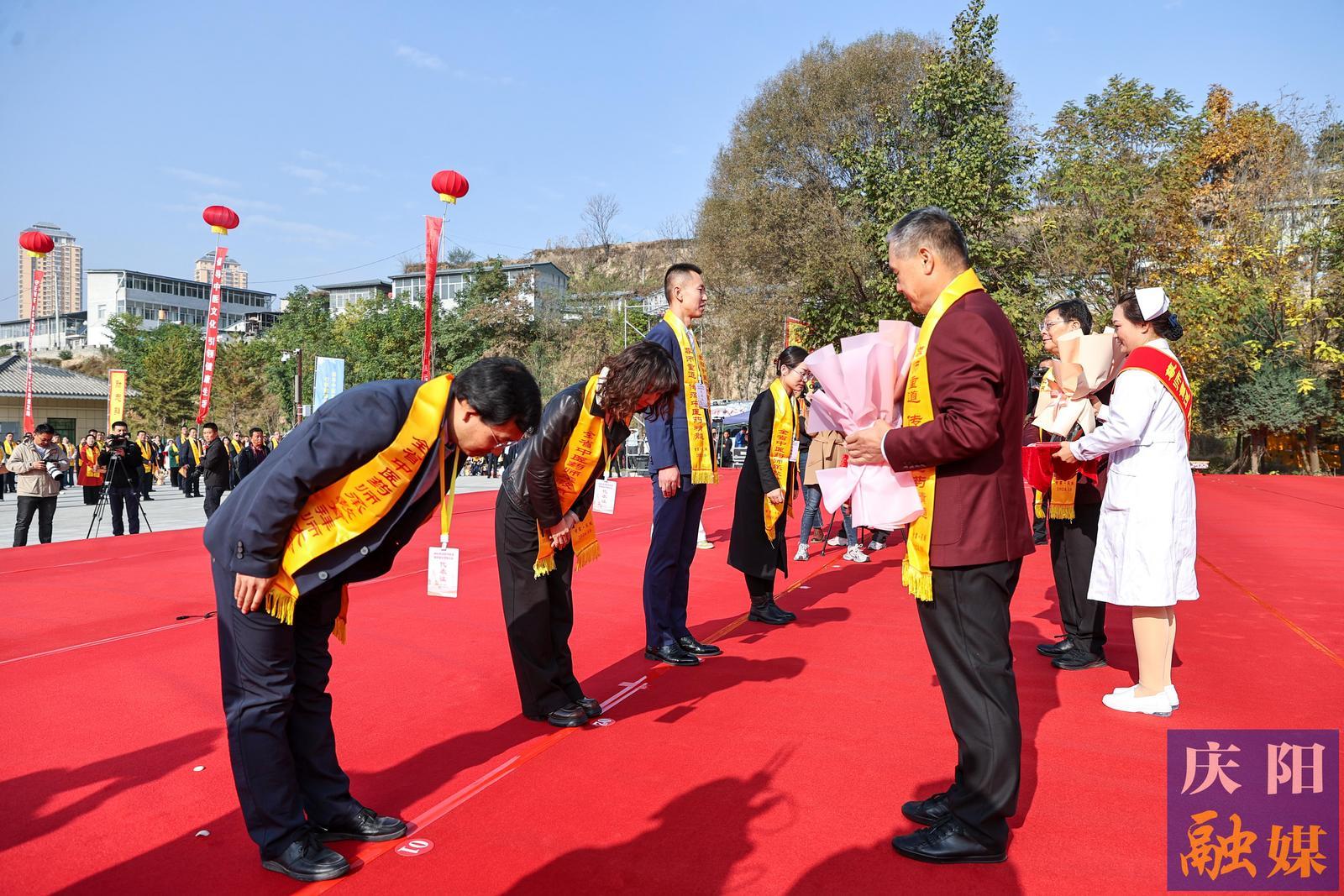 儀式上,參加大會的領導嘉賓向醫(yī)祖岐伯敬獻花籃,參會人員集體誦讀了《黃帝內經(jīng)》。隨后,舉行了師承教育拜師儀式,全體繼承人向指導老師行鞠躬禮,指導老師向繼承人贈《回徒帖》。