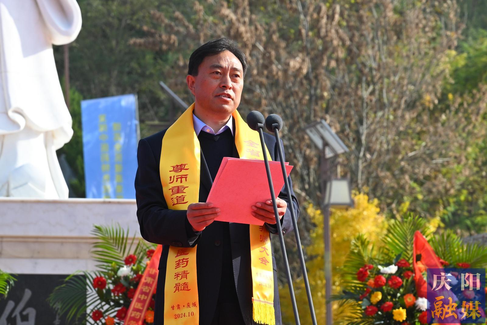 甘肅省中醫(yī)藥管理局副局長王振華宣讀國醫(yī)大師、全國名中醫(yī)、省級名中醫(yī)、中醫(yī)藥師承教育指導老師和繼承人名單。