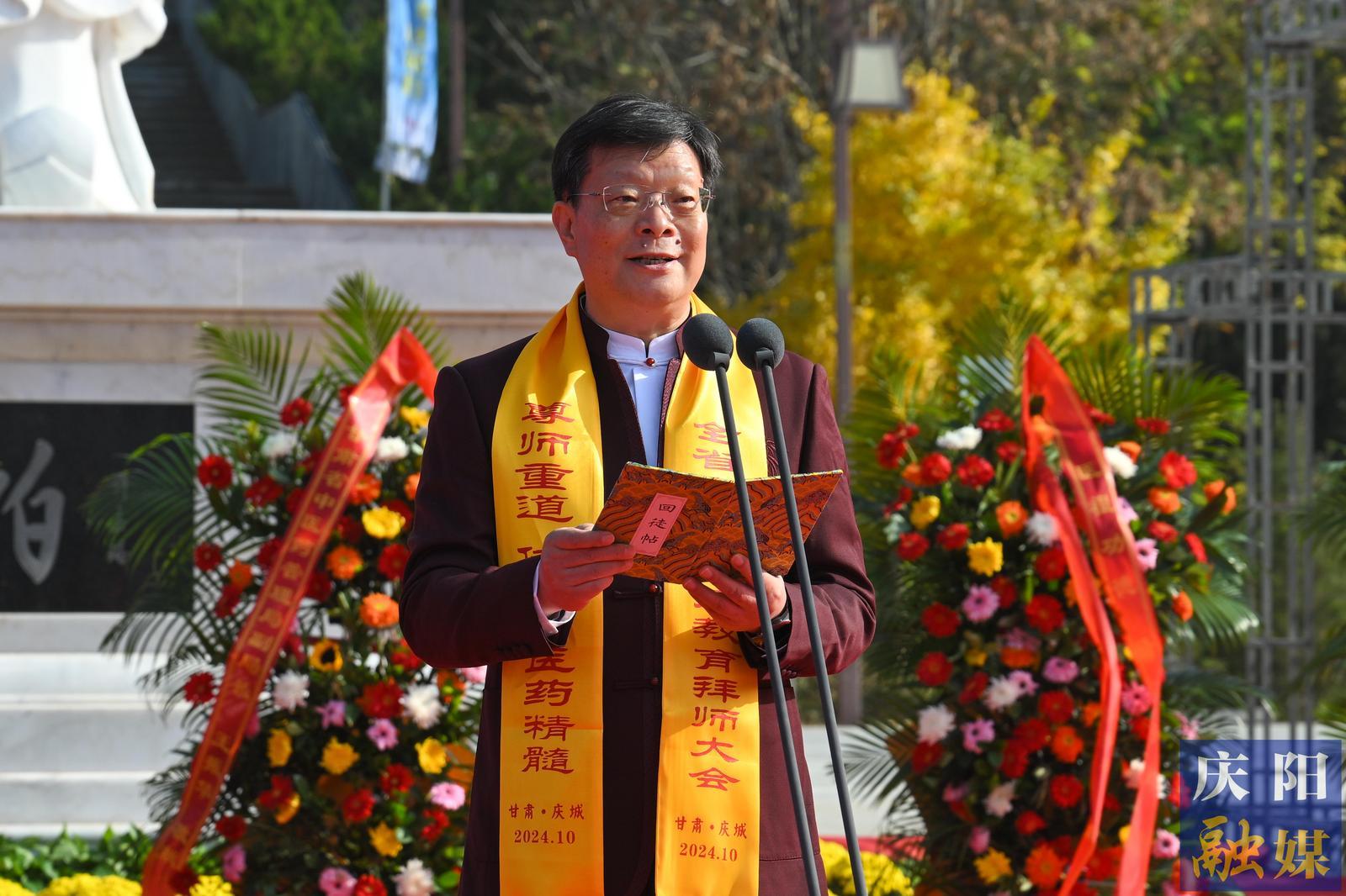 甘肅省中醫(yī)院黨委副書記、院長張志明代表師承指導老師宣讀《師訓箴言》。