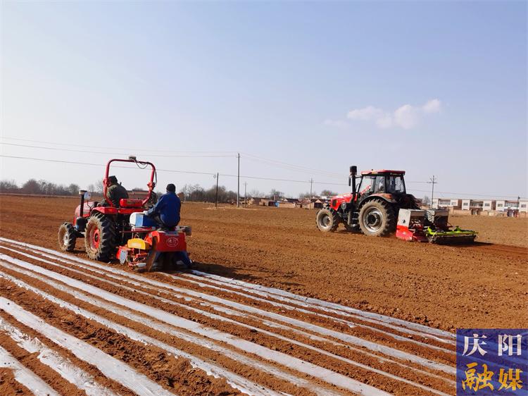 寧縣中村鎮(zhèn)村民進行機械化復種作業(yè)。