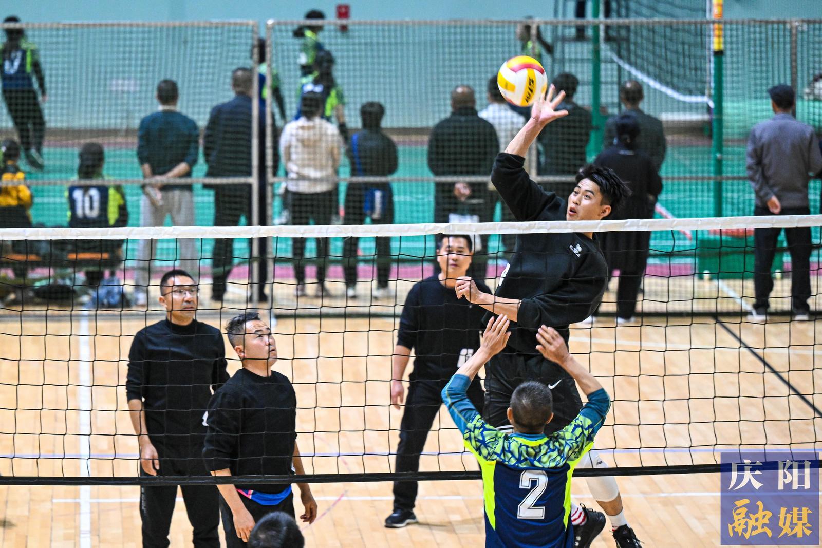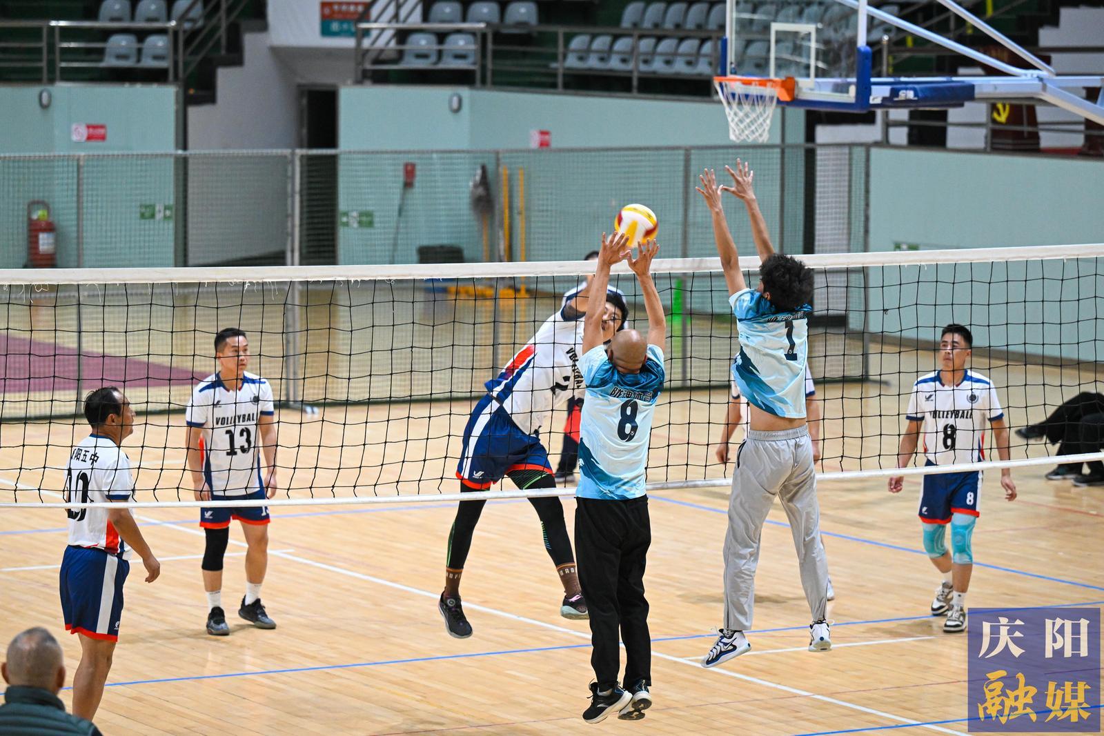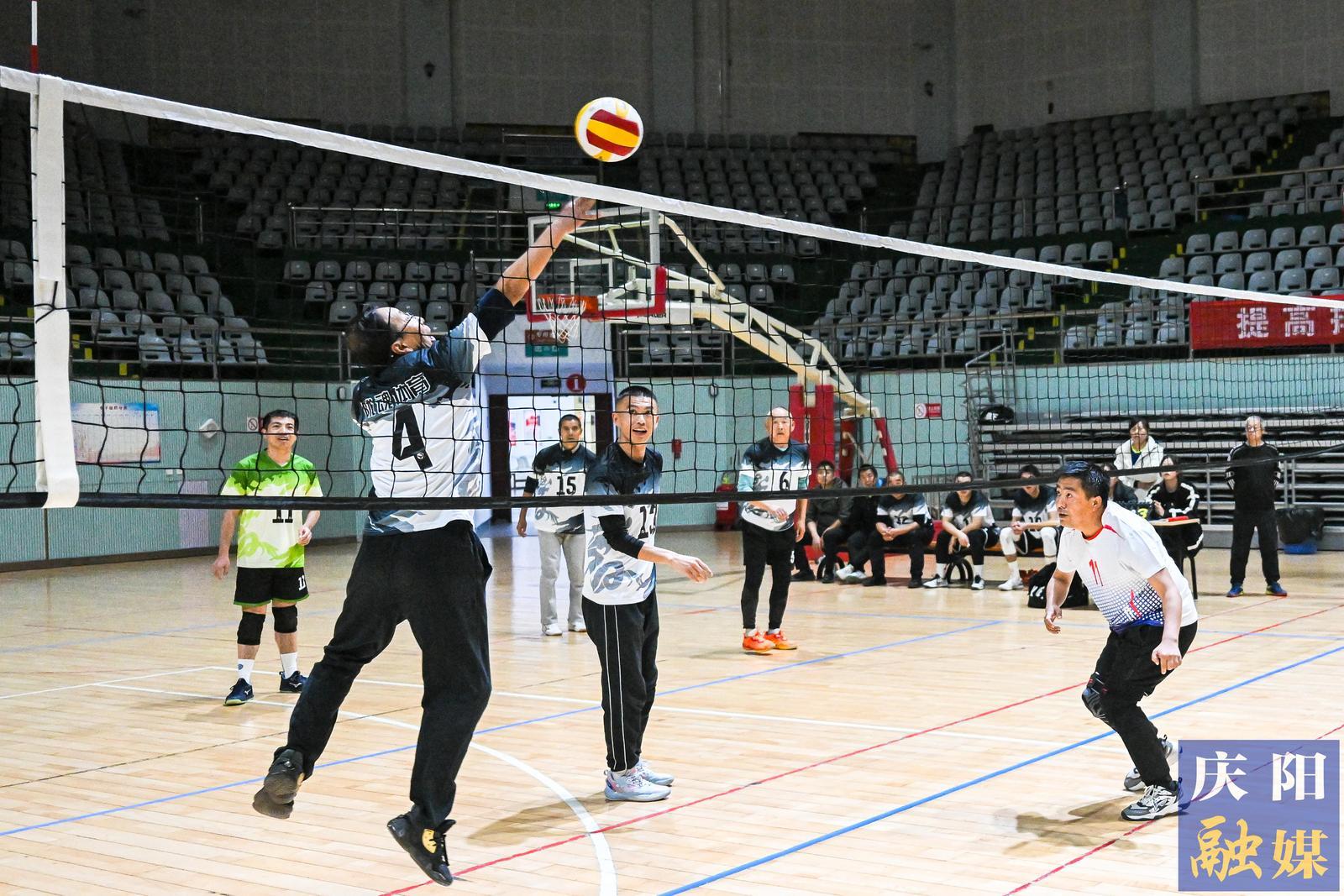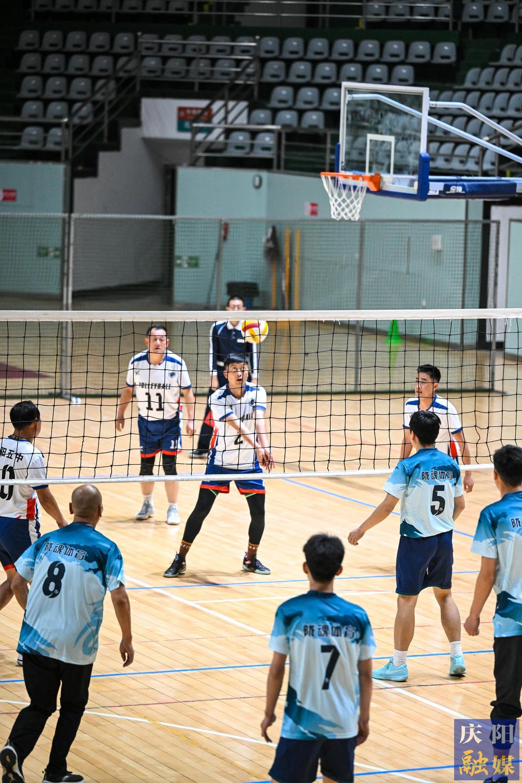 男子組比賽,慶陽市排球協(xié)會代表隊(duì)對戰(zhàn)快樂排球代表隊(duì)。
