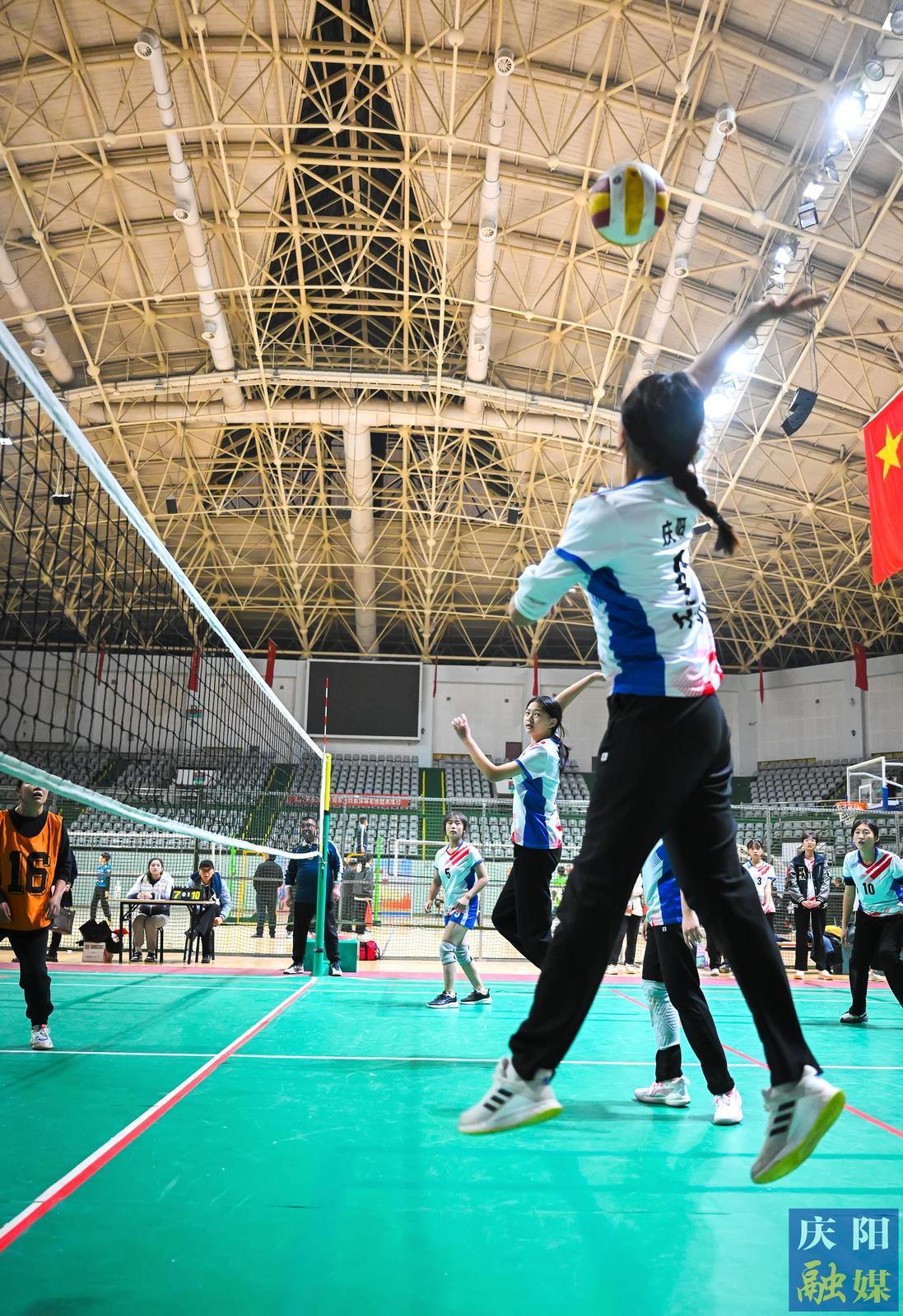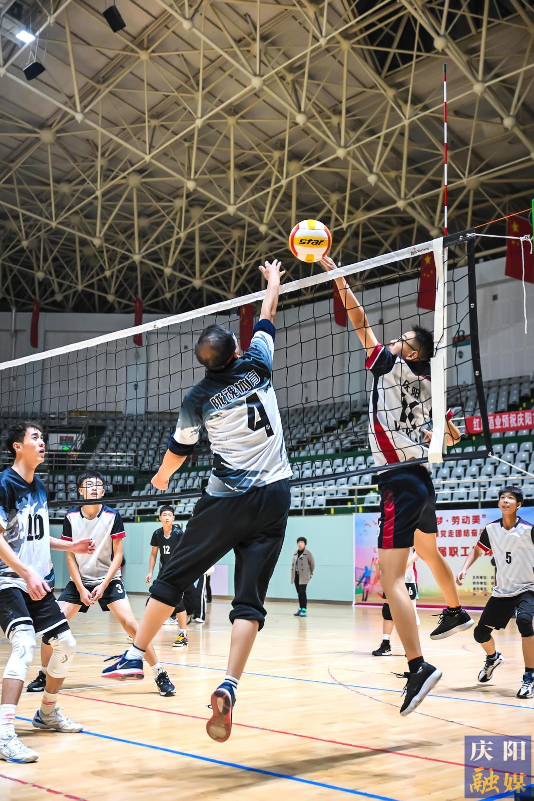 男子組決賽,隴魂體育代表隊以3:2戰(zhàn)勝慶陽二中代表隊獲得第一名(11月10日攝)。