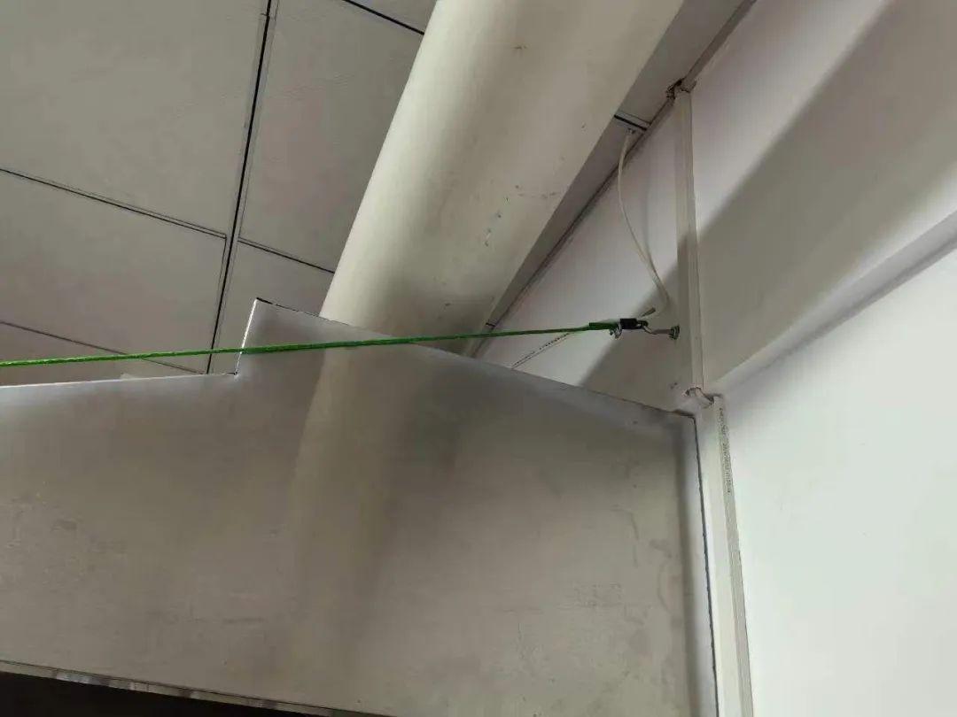 該場所廚房西側(cè)墻壁上換氣扇電線未穿阻燃管保護,不符合《民用建筑電氣設(shè)計標準》(GB51348-2019)第 8.2.2 條要求。