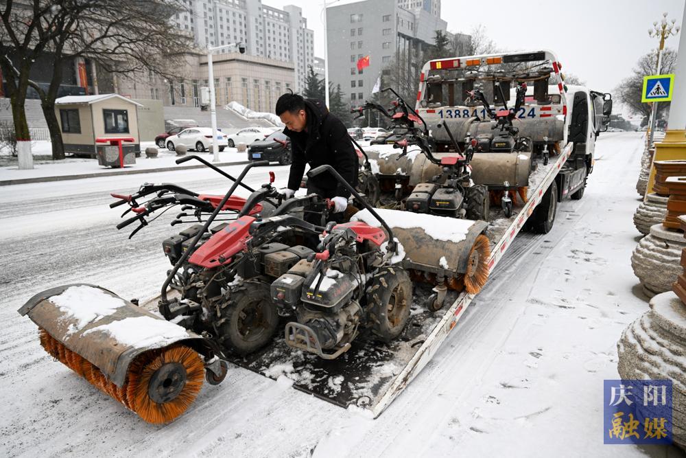 西峰環(huán)衛(wèi)向各個(gè)街道投送清雪設(shè)備。