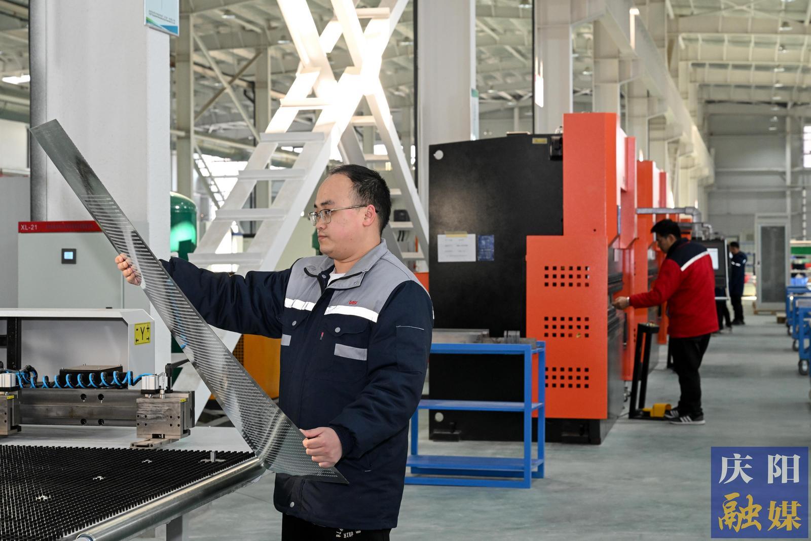 環(huán)縣易事特“東數(shù)西算”裝備制造項目智能化生產(chǎn)車間內(nèi),工人操作各類設備,生產(chǎn)加工儲能系統(tǒng)及機柜配件。