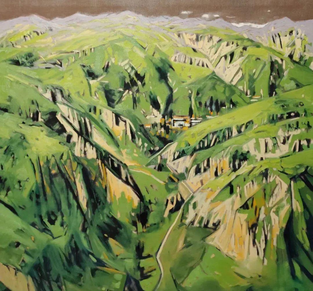 布面油畫(huà) 《春染隴山》 100cmx100cm