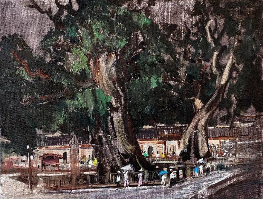布面油畫(huà)《黃帝手植柏》 50cm×60cm