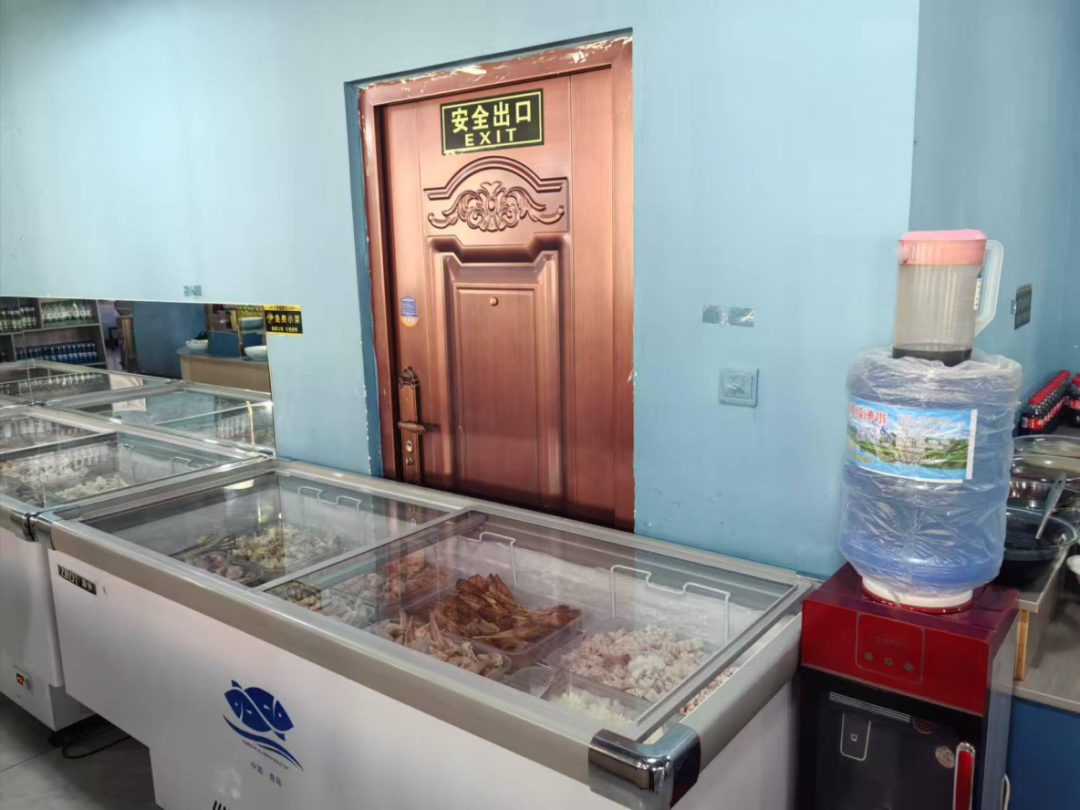 場所二樓西側(cè)安全出口處放置冰箱,飲水機(jī)等電器,占用安全出口,違反了《中華人民共和國消防法》第二十八條之規(guī)定