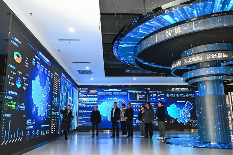 相關(guān)人員在參觀“東數(shù)西算”產(chǎn)業(yè)園區(qū)樞紐資
