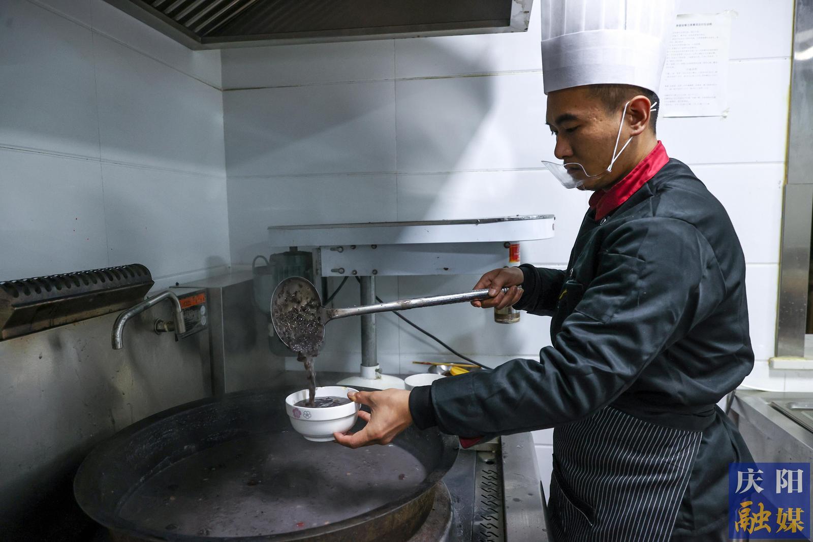 西峰區(qū)東湖社區(qū)熬制“臘八粥”。