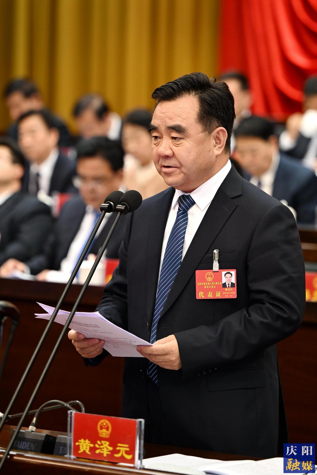 主席團常務主席黃澤元主持大會。上午9時,黃澤元宣布:慶陽市第五屆人民代表大會第四次會議開幕!全體起立,奏唱中華人民共和國國歌。