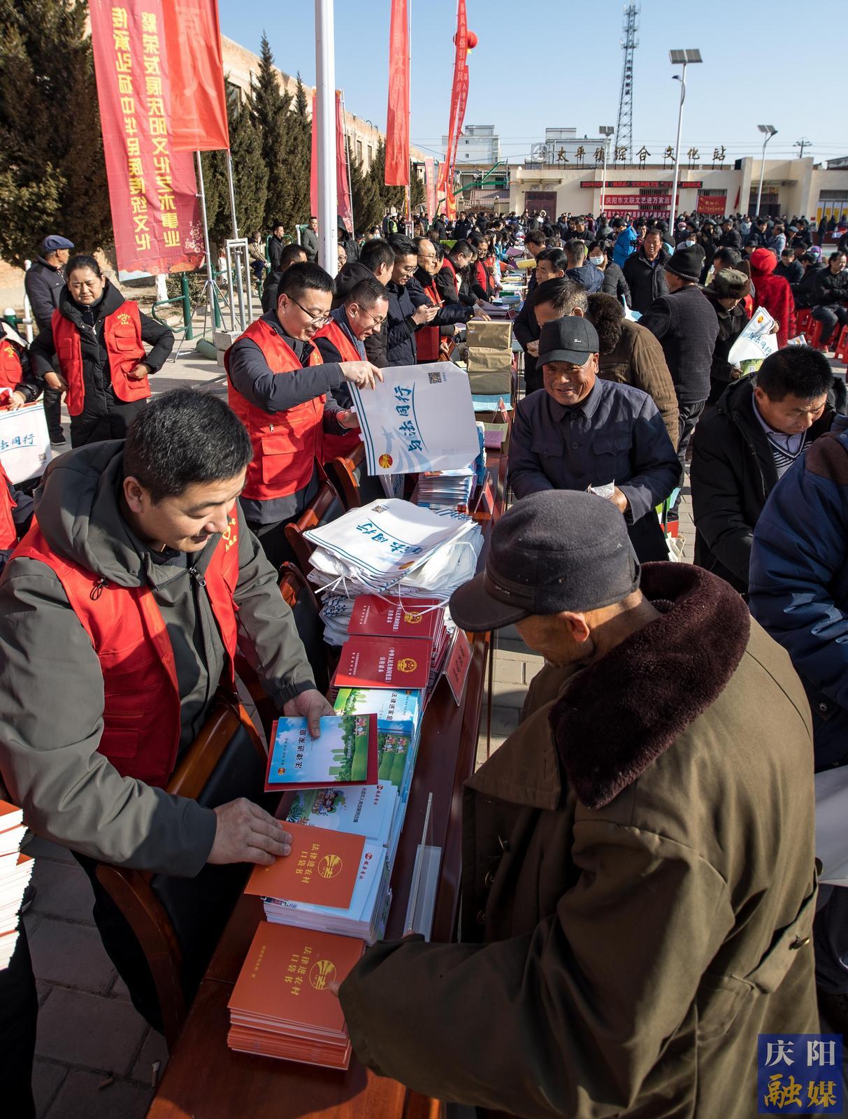 啟動儀式上,市、縣有關部門、單位、企業(yè)向鎮(zhèn)原縣太平鎮(zhèn)捐贈了價值12萬余元的農(nóng)業(yè)物資、書籍年貨等?,F(xiàn)場開展了文藝表演、政策宣講、專家義診等系列活動。