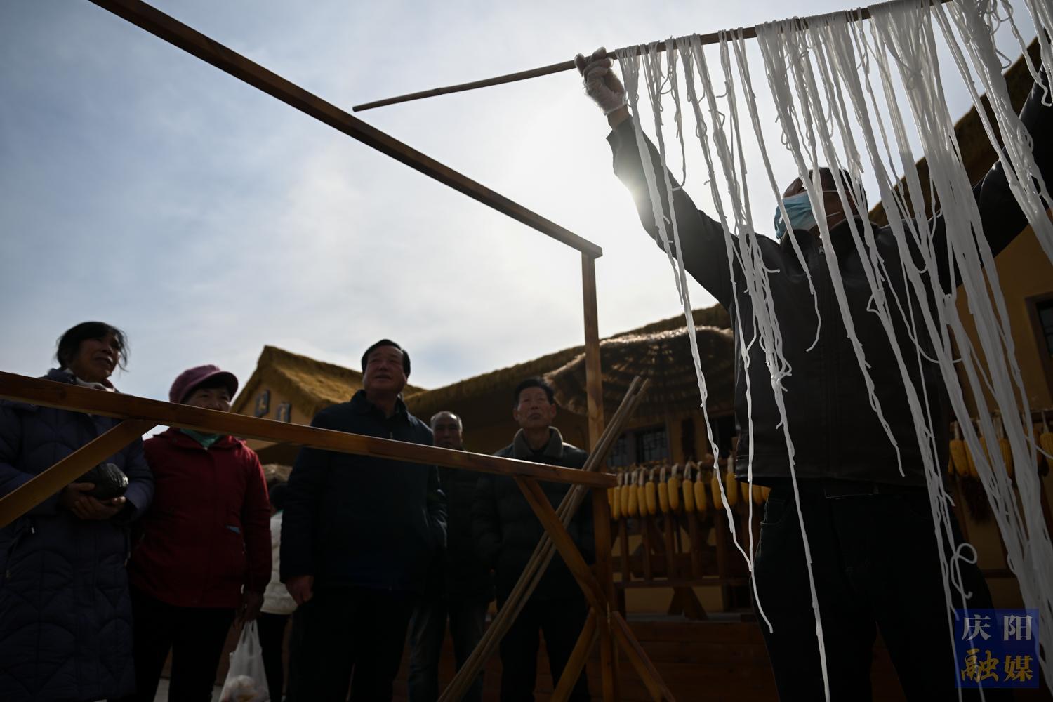 年關(guān)將近,走進(jìn)合水縣太莪鄉(xiāng)黑木村,村民們忙著壓粉條、炸面果、釀黃酒;公社食堂的院子里,吊爐火鍋中的食材上下翻滾,土暖鍋的肉片在炭火的炙烤下“滋滋”冒著熱氣……