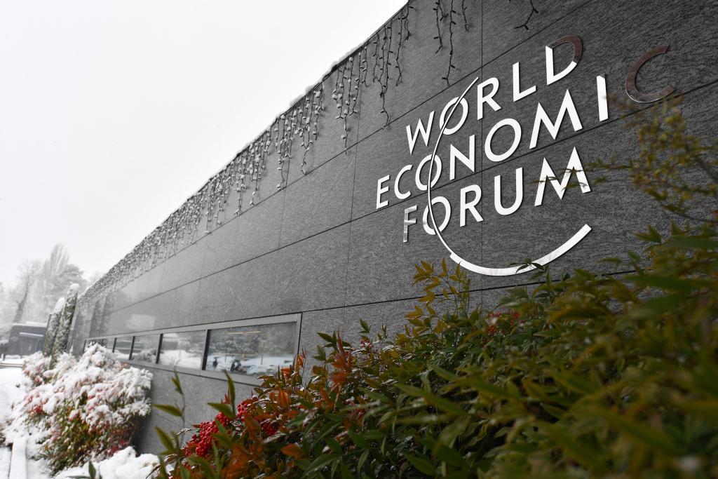 這是2024年1月9日在瑞士日內(nèi)瓦拍攝的世界經(jīng)濟(jì)論壇標(biāo)識。新華社記者連漪攝
