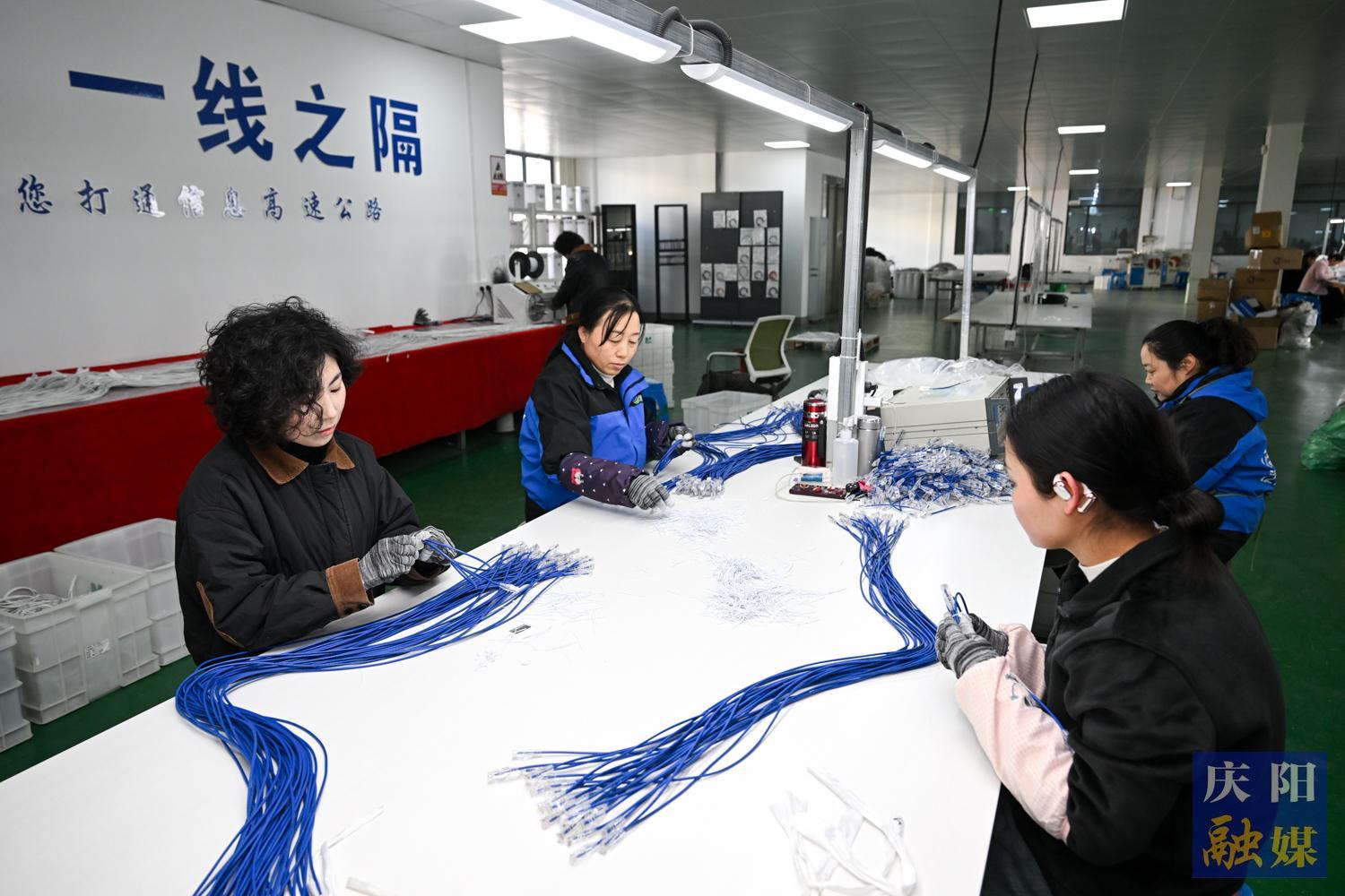 甘肅泛聯(lián)電子有限公司,工人們在加工網(wǎng)線產(chǎn)品。