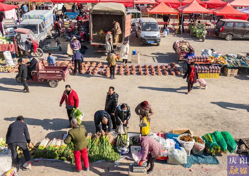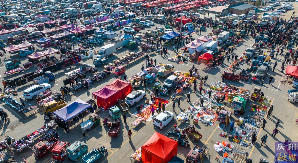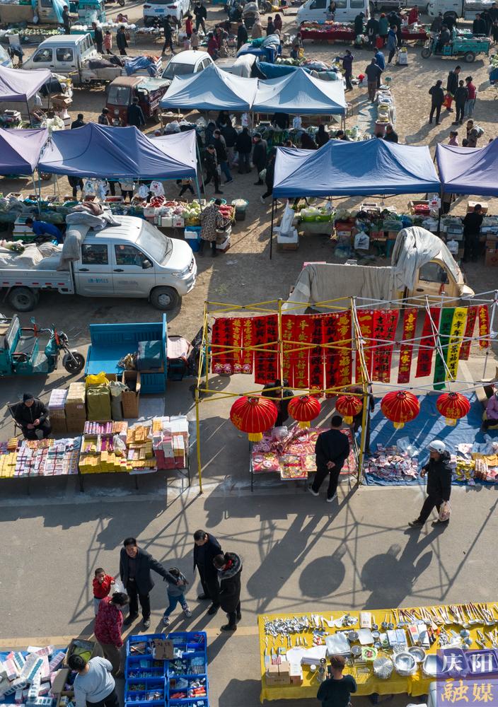 俯瞰西峰區(qū)董志鎮(zhèn)年貨市場。