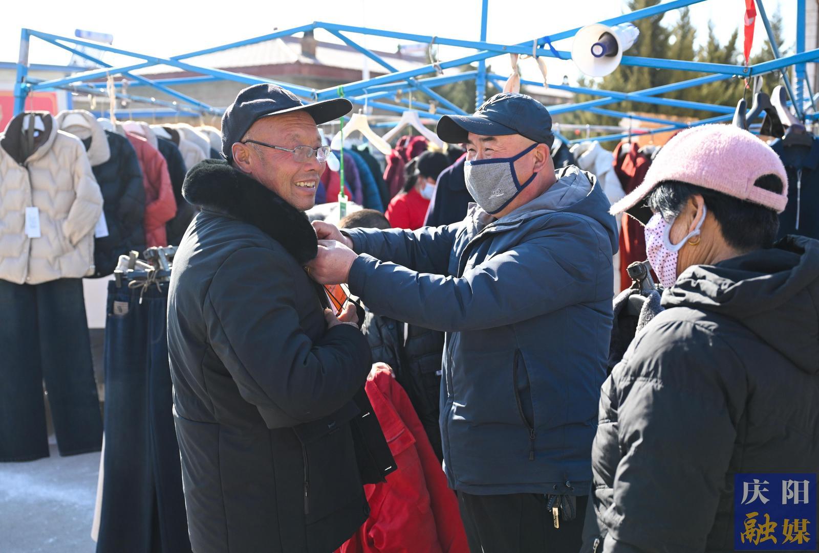 慶城縣赤城鎮(zhèn)年集上試穿新衣的人。