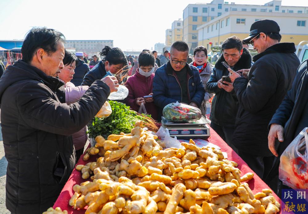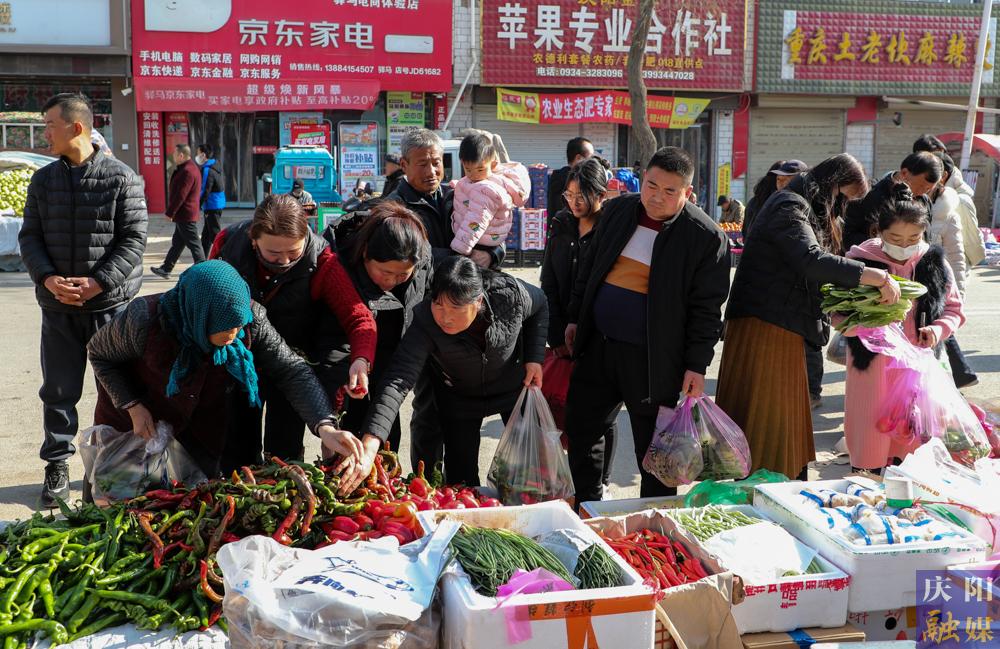 西峰區(qū)肖金鎮(zhèn)年貨市場上蔬菜走俏。