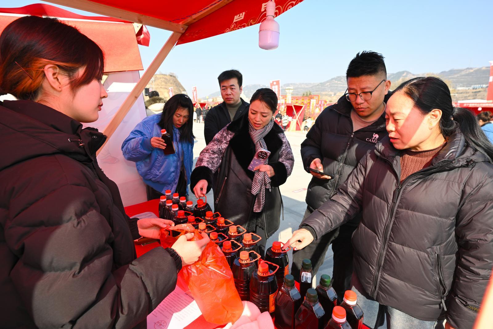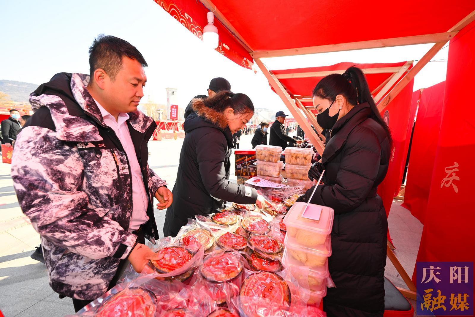 慶陽網(wǎng)訊(慶陽融媒記者 王志龍 徐雅荷)小年悄至,年味更濃。1月22日,為期三天的慶陽市2025年“非遺好物 國潮煥新——四季非遺購物月”暨“農(nóng)文旅+非遺”年貨節(jié),在慶城縣南門周禮廣場熱鬧開市。人們滿懷期待,或推著手推車,或提著購物袋,迫不及待地涌入這場“非遺”與年貨交融的盛會,開啟了一場別開生面的囤貨之旅 。