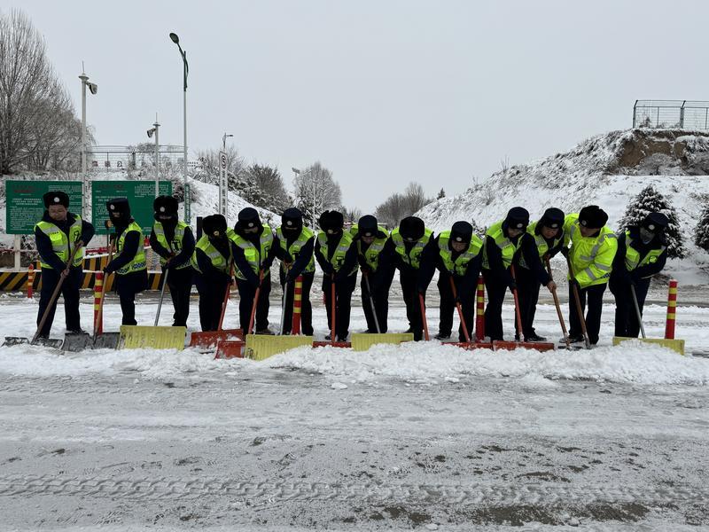 向“冰”而行保暢通。雪情就是命令,保暢就是天職。因25日凌晨降雪量暴增并有結(jié)冰情況,嚴(yán)重影響車輛安全出行,養(yǎng)護(hù)負(fù)責(zé)人嚴(yán)格按照“十個(gè)務(wù)必到位44條工作要點(diǎn)”除雪保暢工作規(guī)程,組織人員采用“機(jī)械+人工”協(xié)同作業(yè)方式進(jìn)行破冰搶險(xiǎn)、防滑保暢工作。同時(shí)加強(qiáng)與“一路多方”等部門的聯(lián)勤聯(lián)動,確保在面對突發(fā)事件時(shí)能迅速響應(yīng)、協(xié)同作戰(zhàn),高效完成處置工作。